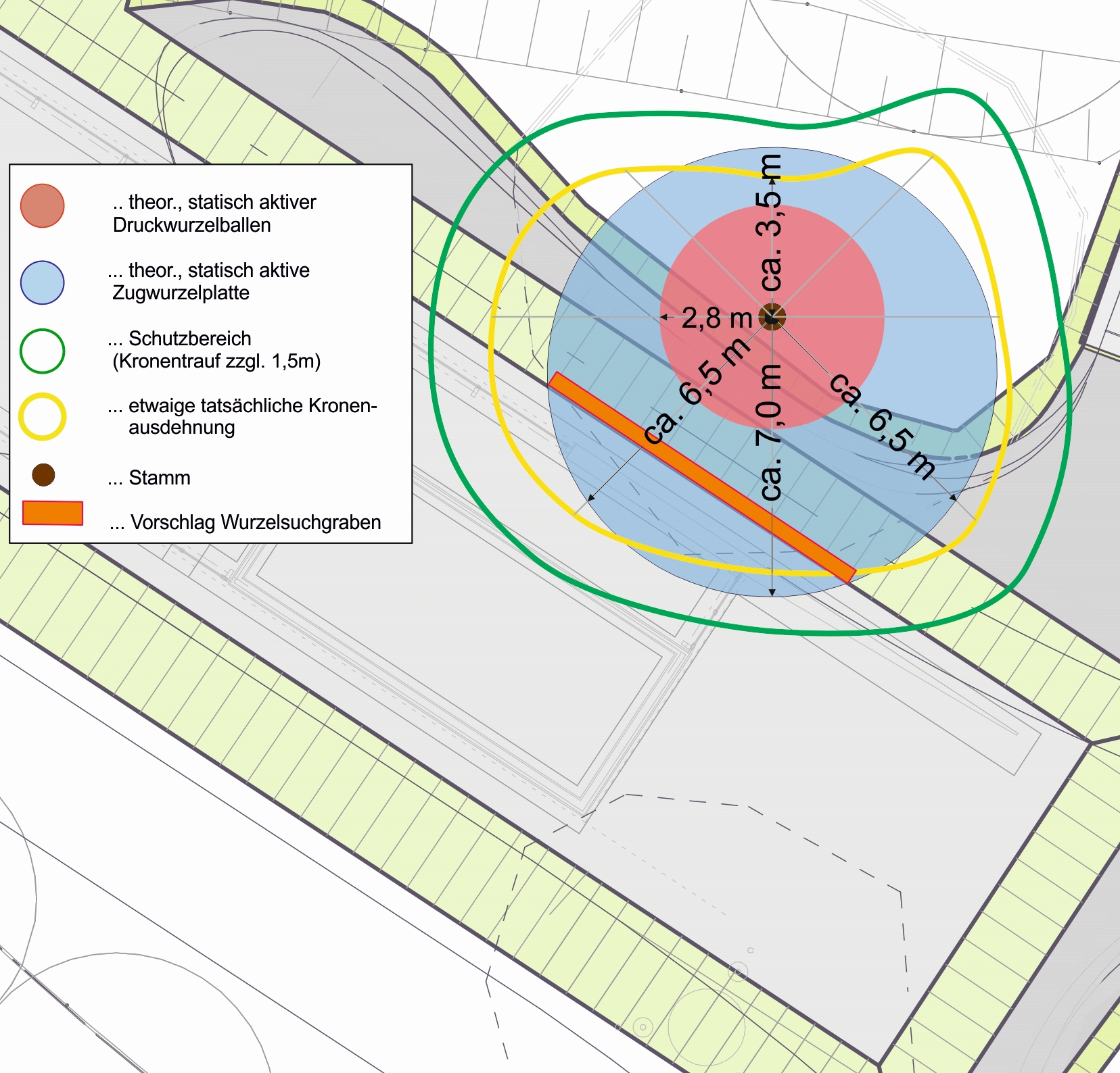 Neben der Beurteilung der Verkehrssicherheit von Bäumen sind auch die fachliche Beratung bei der Planung von schadensvermeidenden oder -minimierenden Maßnahmen z. B. für Bäume auf Baustellen, wichtige Aufgaben für einen Baumsachverständigen. Wir beraten in der Planungsphase zu möglichen Konflikten bei voraussichtlichen Eingriffen in den Schutzbereich und/oder in den theoretischen Wurzelraum schützenswerter Bäume. Dabei unterstützen wir Sie bei sinnvollen Voruntersuchungen, z. B. bei Prognosen zur Erhaltenswürdigkeit, Planung von Wurzelsuchschürfen oder bei der Planung von baumschonenden Schnittmaßnahmen. Sie erhalten sachverständige Hinweise für einen wirksamen Baumschutz nach Grundlagen und Regeln nach aktuellem Stand der Technik.